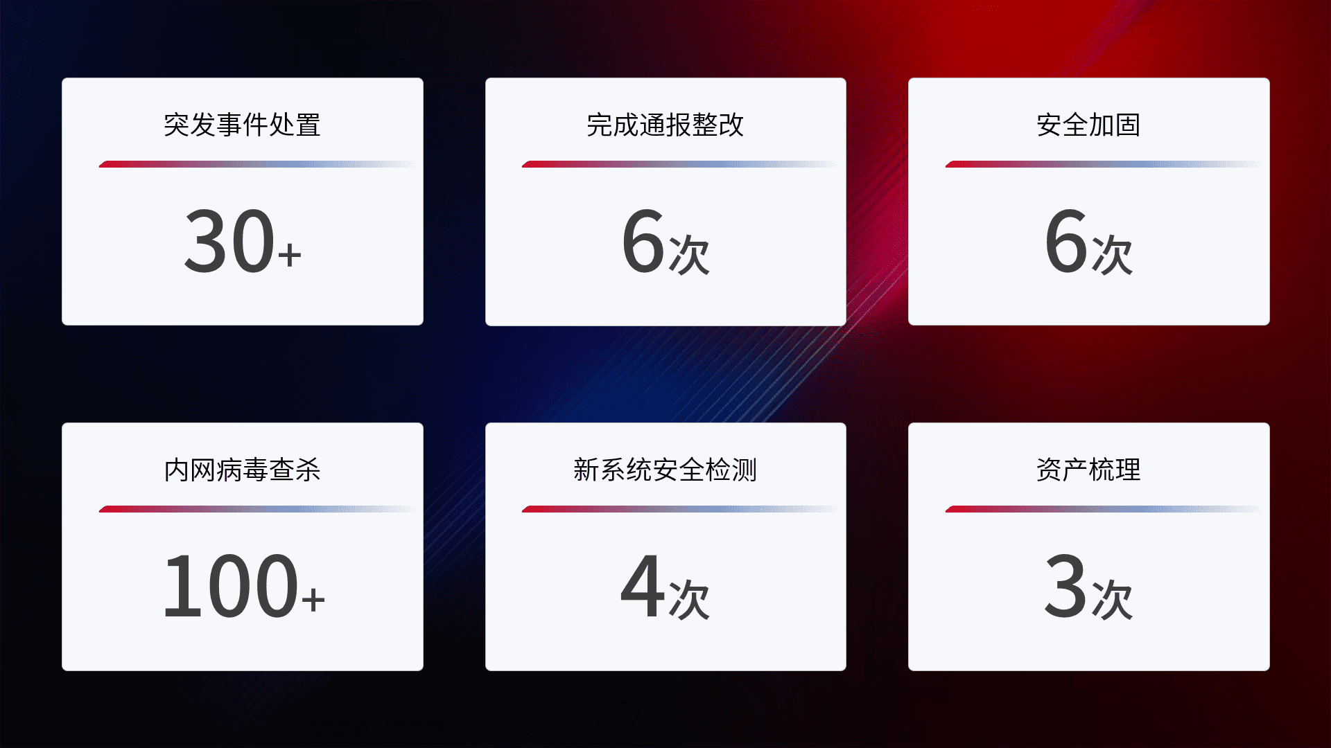 安全水平提升与事件响应:派驻经验丰富的安全工程师,,,,提升医院网络安全防护的整体水平;建立突发网络安全事件的处置流程,,,,提高响应速度和处置能力。。。